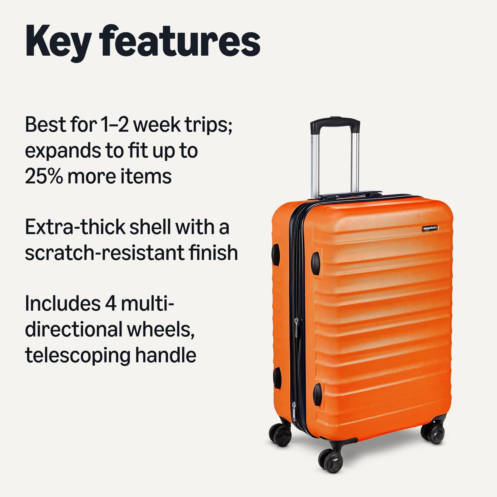 Basics 26″ Hardside Medium Checked Luggage, Hardshell Suitcase With Wheels, Expandable For Up to 15% More Space, With Scratch-Resistant Surface, Four Multi-directional Wheels, Orange